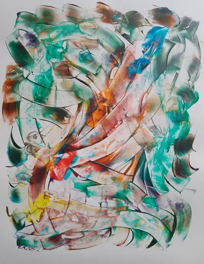 I am exploring my own devised style. The artworks are not done by brush, instead I use a handcrafted painting tool. I use acrylic paint for the majority of my work. I do add other paints, because the resistance of mixing helps create another dimension to the depth of the dried artwork. Around may of 2025 high quality one of a kind pieces will be avail for purchase.