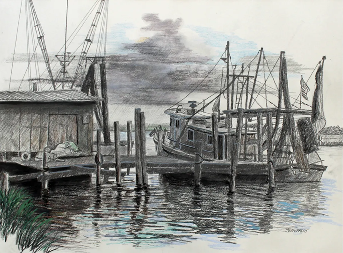 Shrimp Boat, Charleston, SC, graphite and pastel