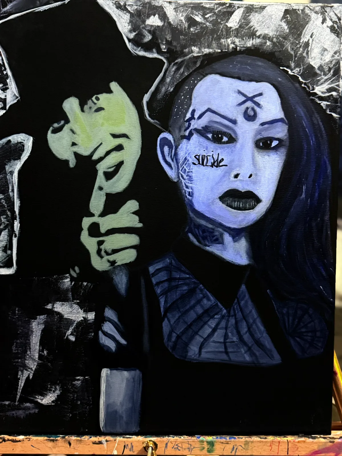 Abstract / ConceptualSurreal / ImaginativeExpressionism / EmotionalContemporary / ModernBold / GraphicBlackGrayBluePainting (Acrylic, Oil, Watercolor)Social CommentaryDark / MacabreAcrylic