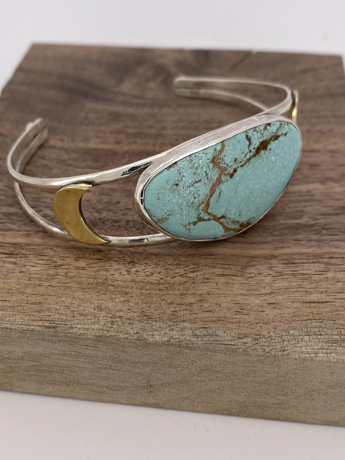 Sterling Silver, Brass and Turquoise Cuff Bracelet